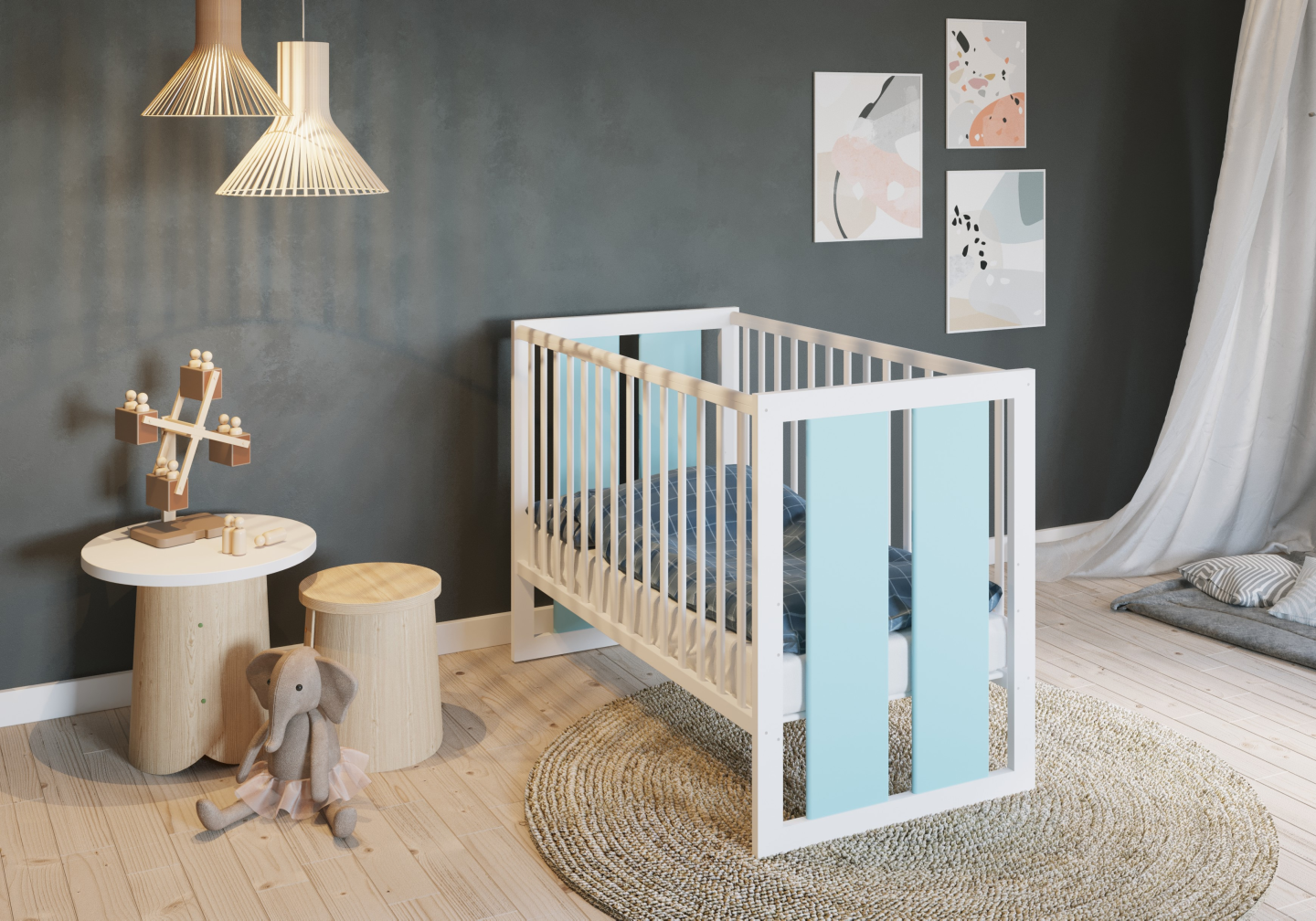 Wymiary zewnętrzne: 124,5 × 65 × 81 cm – łóżeczko stworzone z myślą o rodzicach, którzy szukają uniwersalnego i bezpiecznego rozwiązania do pokoju dziecka. Model BRADY łączy ponadczasowy design z nowoczesnymi funkcjami, które ułatwiają codzienną opiekę nad maluchem.
